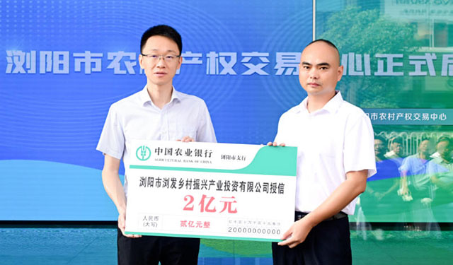 針對農戶“融資難、融資貴”的痛點,中國農業銀行瀏陽市支行提供堅實金融支持。活動當天,該行現場向瀏陽市瀏發鄉村振興產業投資有限公司授予2億元授信額度,并為兩位瀏陽經營大戶提供350萬元授信,同時,銀行在中心設立常駐金融服務點,安排專人提供惠農金融咨詢與辦理服務。