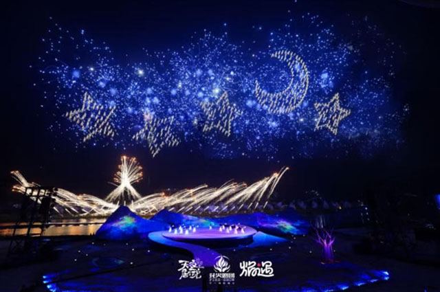 此次活動最引人注目的創新,在于突破傳統煙花表演的時間邊界——不同于天空劇院常規夜間燃放模式,本次特別將燃放時長延伸至晝夜雙時段:藍調時刻,創意彩煙以莫奈風色彩勾勒天空畫卷,打破“煙花只屬夜晚”的固有認知;夜幕降臨時,全新“天幕焰火”以天空為陣地高難度環繞綻放,配合燈光與沉浸式音效,讓瀏陽河從晝到夜化作絕美舞臺。這種晝夜聯動的呈現方式,正是“焰遇”IP對傳統花炮文化的創新性表達。
