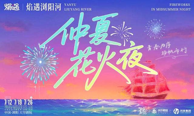 2025年7月12日、19日、26日三個周六晚,“焰遇瀏陽河?仲夏花火夜”將在瀏陽市天空劇院上演!這場由“焰遇”IP聯袂花火劇團打造的花火盛會,以“青春航?!睘閿⑹轮骶€,匠心打造“落日為號”白日焰火計劃、“青春序曲”暖場樂隊秀、大型沉浸式煙花秀,以星空為幕、焰火為浪,邀你共赴這場專屬于青春的夏夜光焰狂歡。