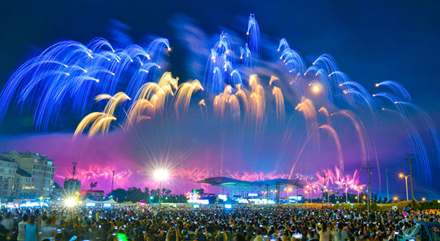 當絢麗的焰火在夜空中綻放,與精心編排的無人機矩陣交相輝映,“人、聲、光、電、影、景、劇、焰”完美融合,營造出熱烈而濃厚的氛圍。每一位遠道而來的游客,都不由自主地發出同樣的感嘆:“震撼!”
