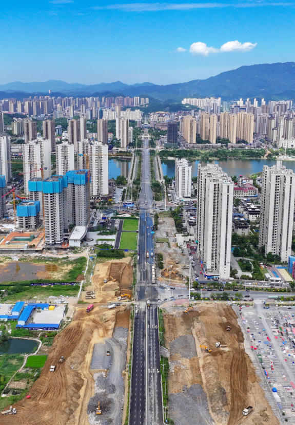 機器轟鳴,車輛穿梭——8月24日,在錦程大道拓寬工程的施工現場,一片繁忙景象。挖掘機揮舞長臂正在進行路基開挖,這條當前寬度21米的道路,即將被拓展至120米,將有效緩解天空劇院周邊區域的交通壓力。