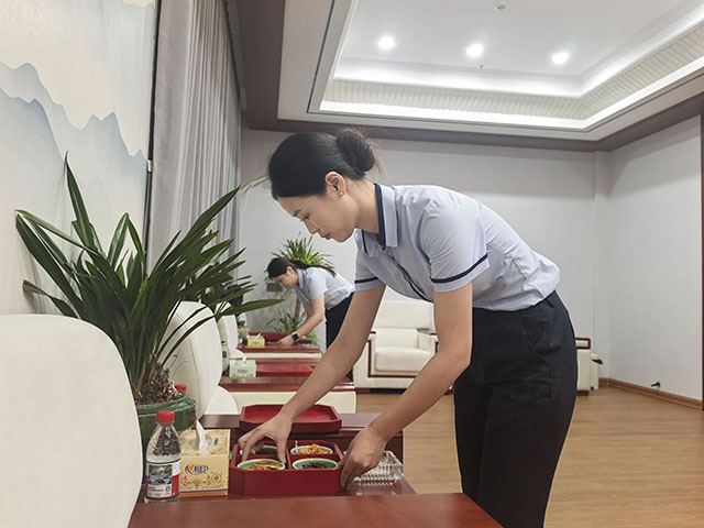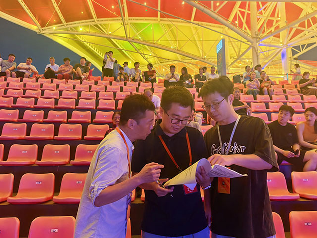 在另一邊,株樹橋城市運營公司共計有61名工作人員堅守在自己的崗位上,如同61顆螺絲釘,牢牢鉚在自己的崗位上:在人頭攢動的天空營地,保安李先念和24名保安兄弟一起共同組成了安保隊,為營地內安全保駕護航;保潔員黃芳手持掃帚簸箕堅守在新婦幼的臨時停車場,在演出散場后默默清理著,留給城市最初的整潔;在天空劇院內,接待人員用最美的微笑迎接每一位貴賓。他們是平凡的個體,卻共同織就了一張覆蓋入口、場內、停車、疏散等各個環節的無形服務網。