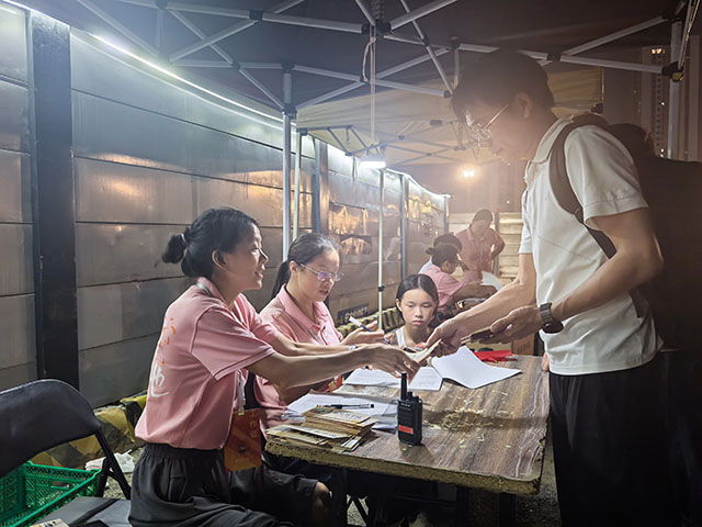 焰火秀當天13時,湘贛邊城市候機廳與瀏發教育50余名工作人員便在天空營地開始忙碌,他們搬運桌椅、布置場地、調試設備、引導游客。焰火結束后,他們的工作仍在繼續——整理物資、清理場地,一直工作到凌晨。“國慶期間兩場焰火,我們累計服務天空營地游客2300人,焰火直通車游客近6000人。”湘贛邊城市候機廳經理胡靜介紹。