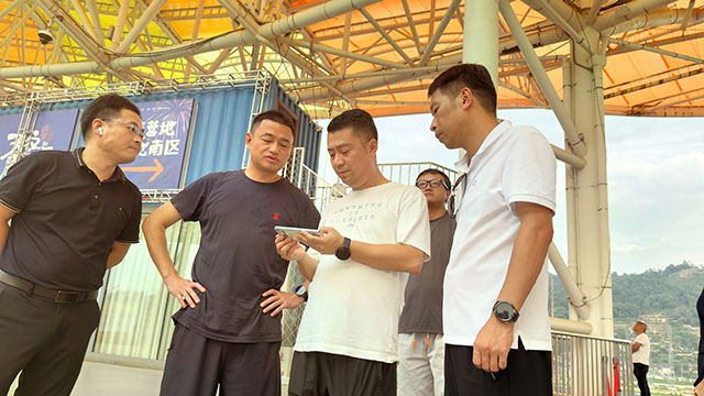 瀏發集團工程線與工人們日夜加班加點,測量、打樁、安裝……將雜亂的工地找平、填方,再將一塊塊鐵皮圍擋和照明、廣播應急設施等一一安裝好,只為給數萬游客提供一次最踏實的安全觀賞之旅。