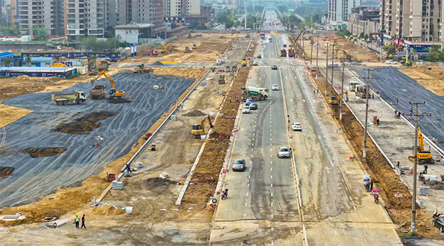 10月12日,來(lái)到錦程大道提質(zhì)工程建設(shè)現(xiàn)場(chǎng),機(jī)械轟鳴、人員忙碌,一派熱火朝天的施工景象,該路段整體施工進(jìn)度已達(dá)80%,進(jìn)入最后沖刺階段。
