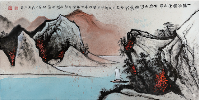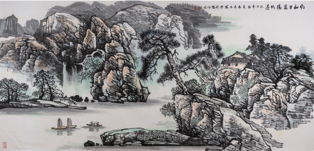 《風(fēng)和日麗揚(yáng)帆遠(yuǎn)》這幅國(guó)畫作品通過細(xì)膩的筆觸和豐富的色彩,展現(xiàn)了美麗的自然景象,給人以愉悅的視覺享受。畫面中的船只形象寓意著人們勇往直前的精神,也寓示主人事業(yè)拓展遠(yuǎn)方。