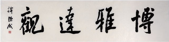 這幅作品中,墨色的濃淡和線條的疾澀徐緩,皆服務(wù)于表達(dá)“博雅”之深厚積淀與“達(dá)觀”之灑脫。這不僅僅是一幅字,懸掛于廳堂書房,它是主人深厚修養(yǎng)與卓越格局的象征;置于案頭,它又是面對(duì)世事浮沉的智慧箴言。