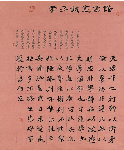 夫君子之行,靜以修身,儉以養(yǎng)德。非淡泊無以明志,非寧靜無以致遠(yuǎn)。夫?qū)W須靜也,才須學(xué)也,非學(xué)無以廣才,非志無以成學(xué)。淫慢則不能勵(lì)精,險(xiǎn)躁則不能治性。年與時(shí)馳,意與日去,遂成枯落,多不接世,悲守窮廬,將復(fù)何及!
